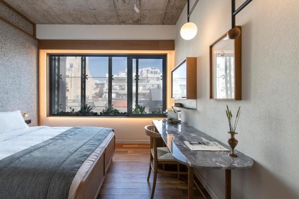Amenities: The hotel offers a range of high-quality amenities, including a well-equipped fitness center and versatile meeting spaces. While there is no pool, the focus on culinary and cultural experiences ensures guests have a memorable and enriching stay. At the terrace, you will find The Retire bar ( the word for penthouse in Greek), which offers a breathtaking view of the Acropolis, making it the perfect location for a drink. Note, however, that it is open from April to October – because, understandably, it can be a disappointment if you look forward to admiring the view but cannot.