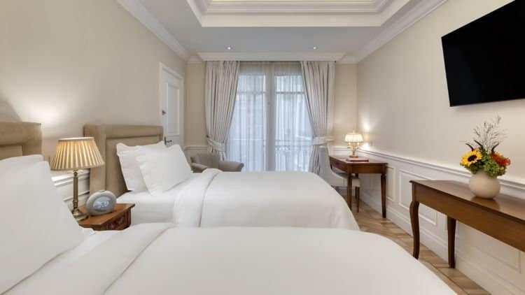 Rooms: The rooms are clean, comfortable, and well-maintained, with luxurious amenities and comfortable beds. If I had to pick a feature, I would go for the parquet floors. Room sizes range from 24- 35 sqm for the regular rooms, 50-75 for the Suites, and 350 sqm for the Penthouse Suite with a private rooftop pool! (Tripadvisor)​​ (Booking.com)​.
